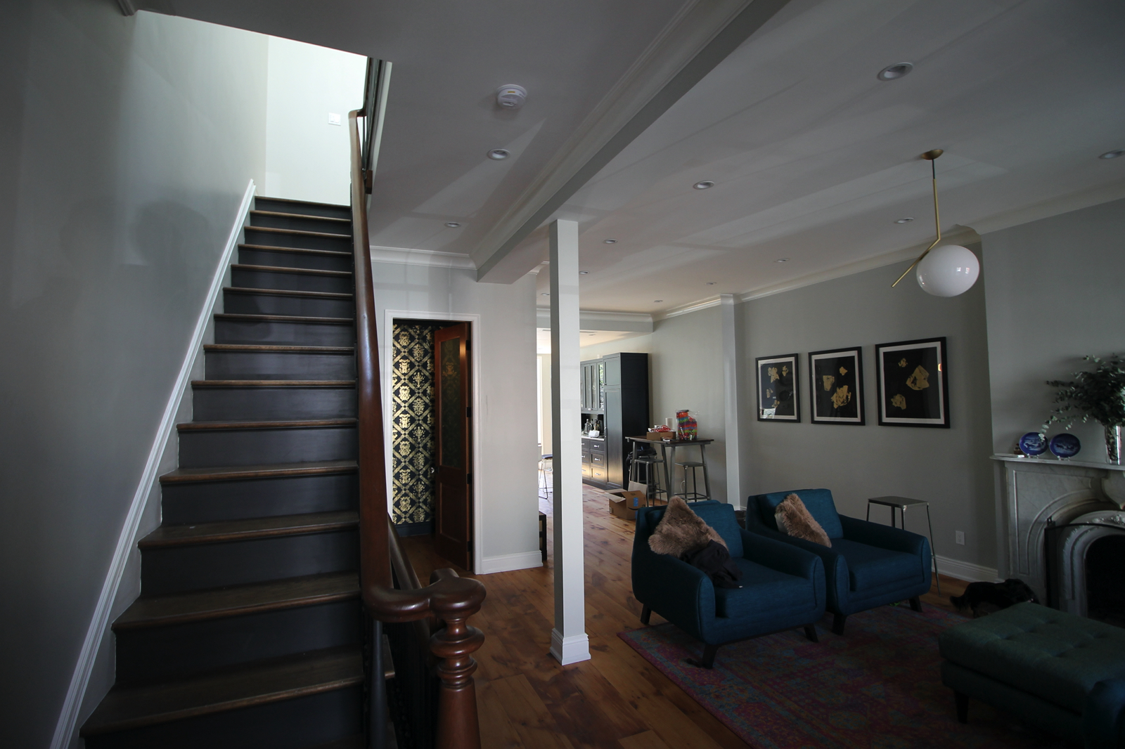 fully restored and rebuilt staircase with original newel posts, handrails, balusters, treads and risers
