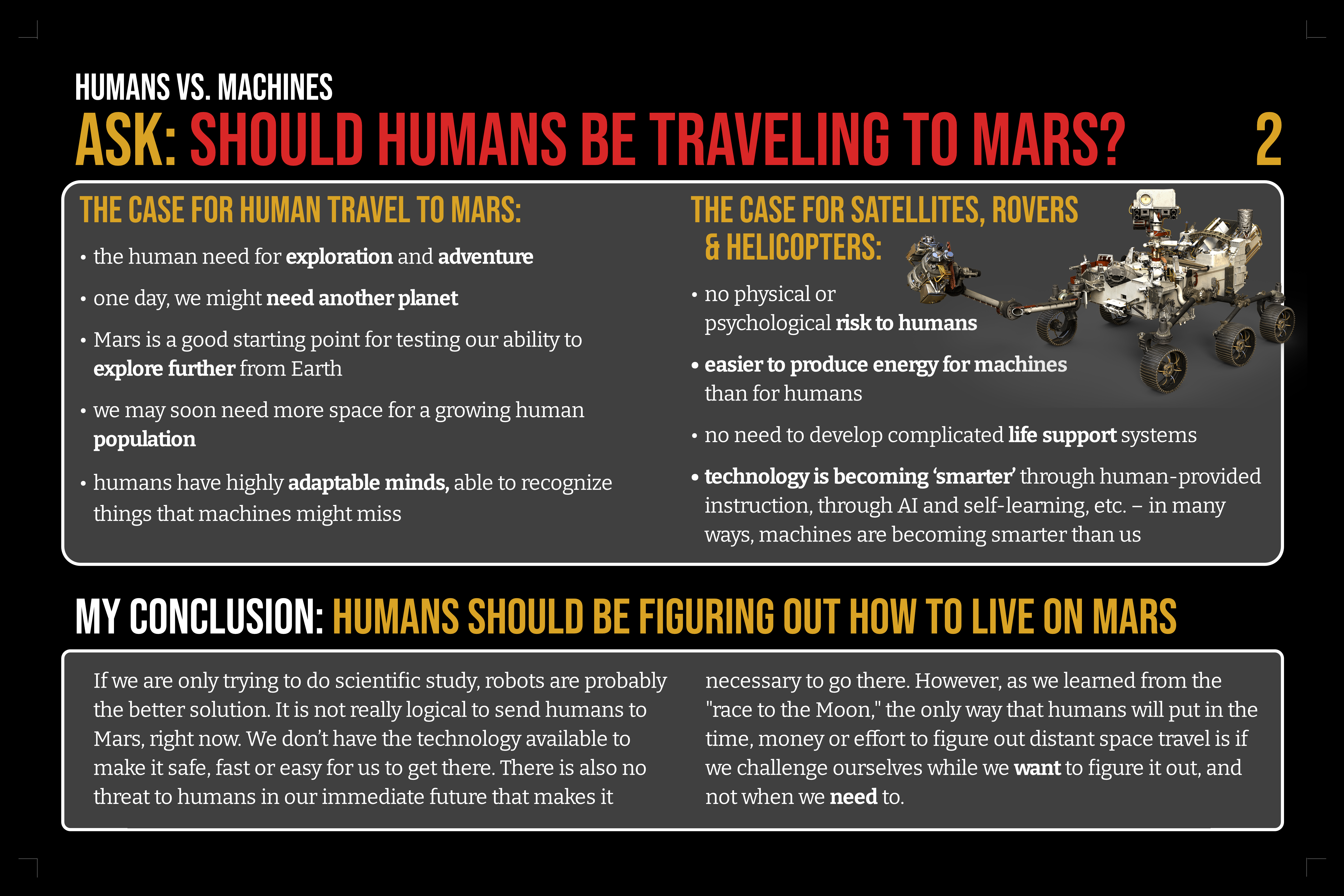 The purpose of my project has been to design a human habit that could successfully work on the planet Mars. Recently, I saw a video about a bunch of different designs for Mars habitats, and I thought that most of them seemed either unrealistic or totally impractical. They mostly looked like they were really pretty homes that would be hard to build here on Earth, let alone on Mars.