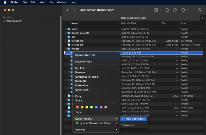 All done! Now, when you return to the Finder, hold down the Control key while clicking on any folder, scroll down to Quick Actions, and choose New Subfolder... to quickly and easily create a folder within the selected folder.