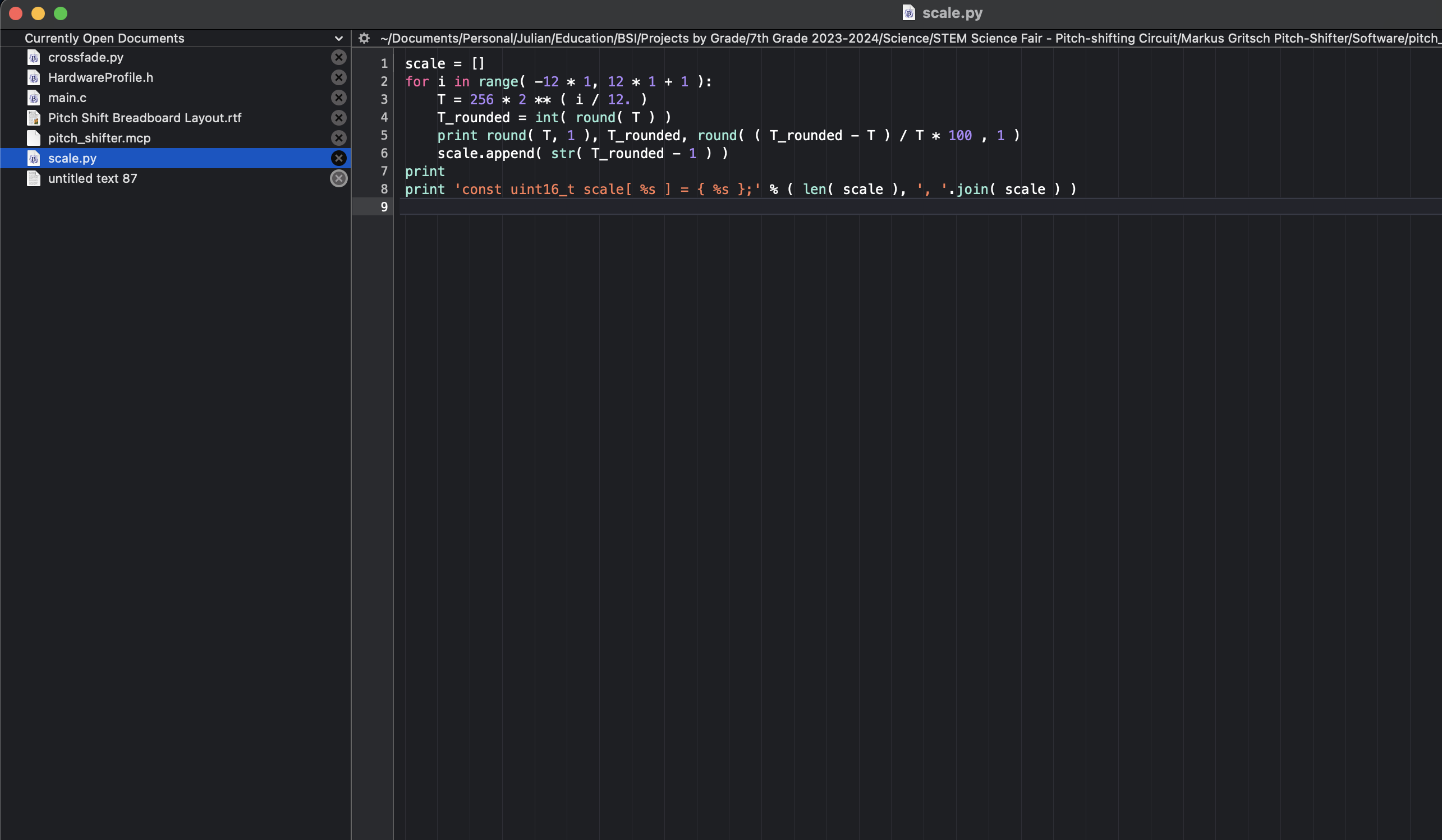 This function uses a math formula to generate the values needed to transpose the digital audio data up or down in according to the musical scale. These values are fed back into main.c, to be converted back to analog sound.