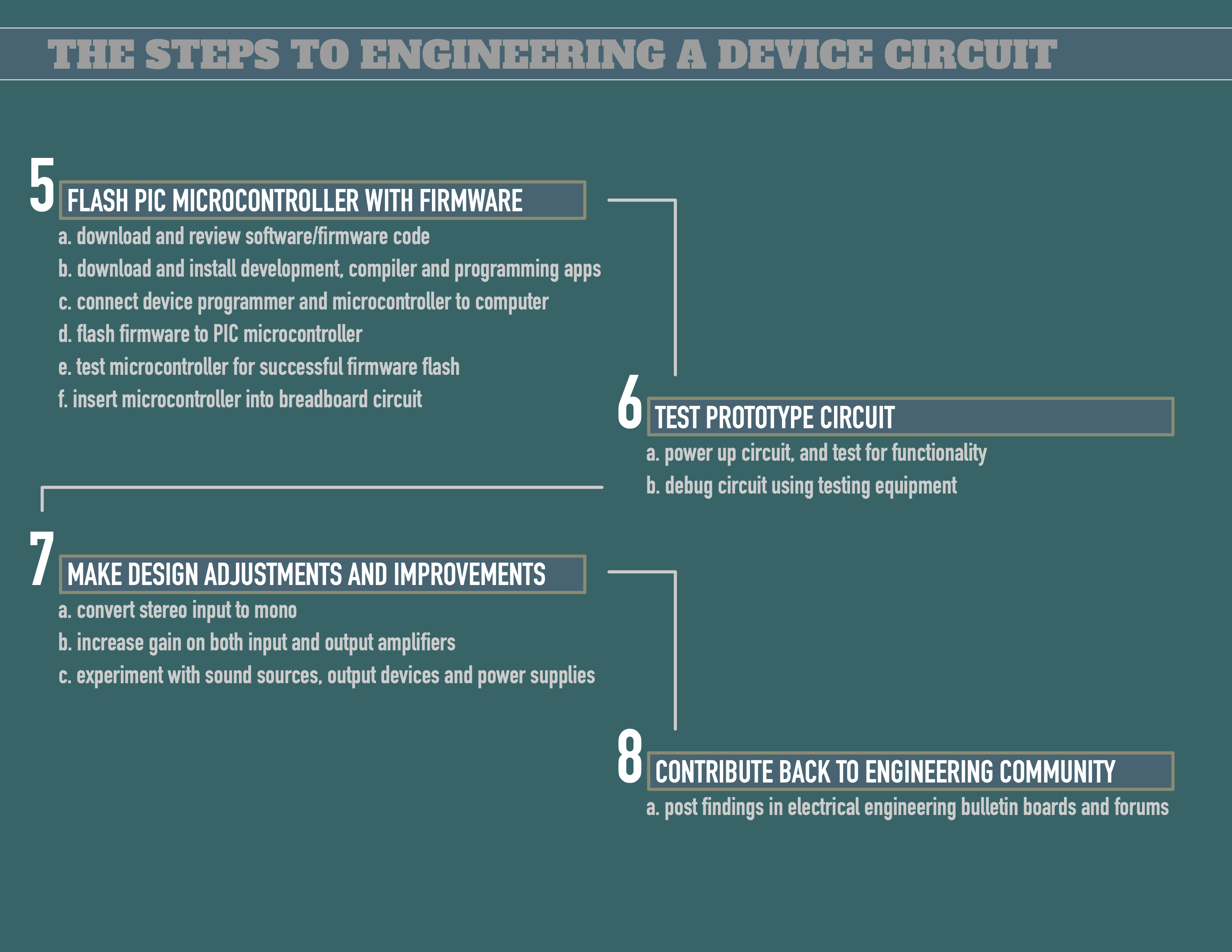 Making sketches of the circuit makes it possible to share a circuit design with other engineers, it makes the different sections of the circuit make more sense, it inspires ideas on how to lay out the parts and components, and it helps to locate areas of the circuit that are not clear and need further research. The manufacturers of the different components have detailed specification sheets posted on their websites that explain how their components work, and how they need to be wired for them to work.