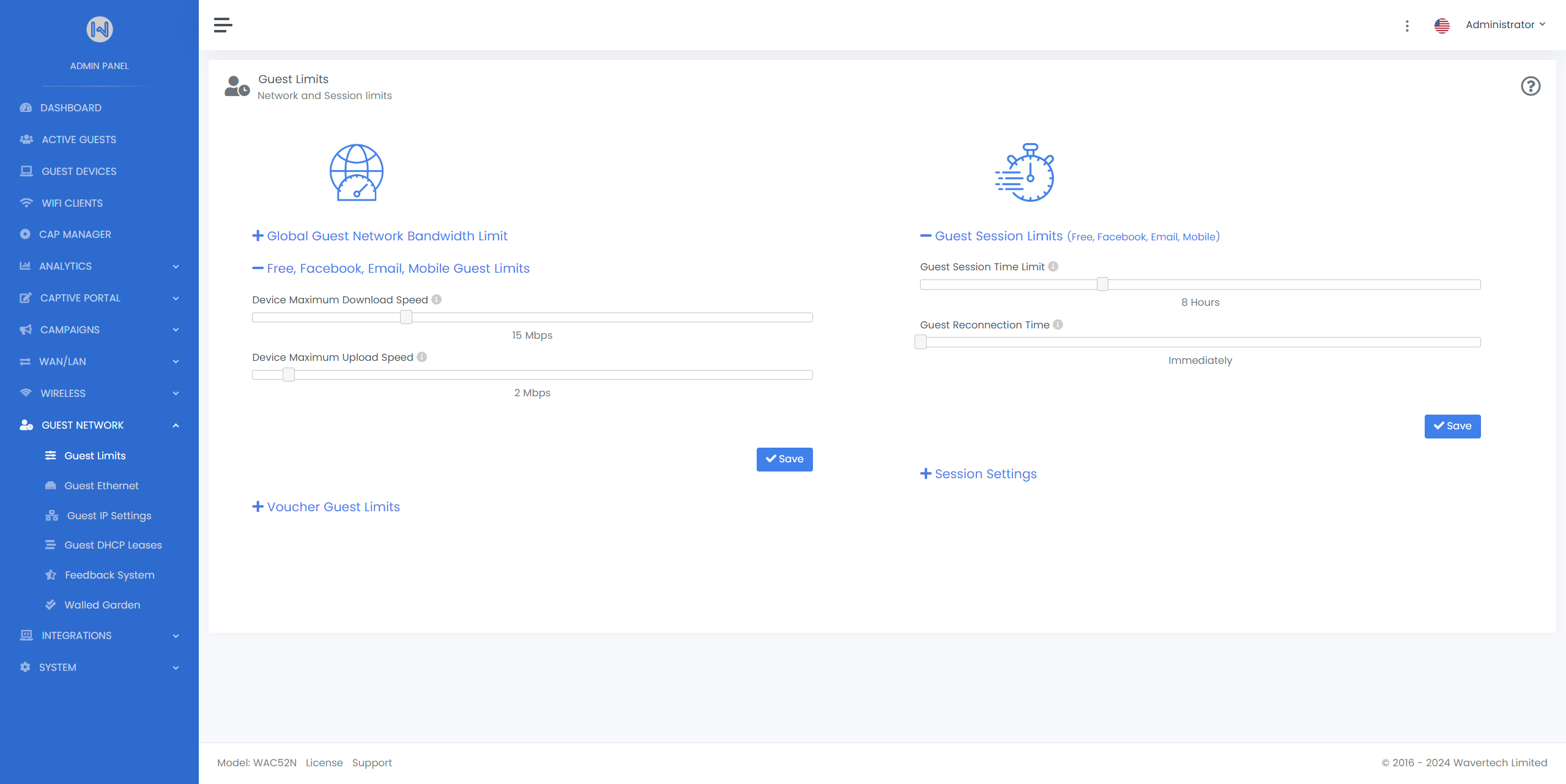 The portal can be configured to either limit connection time for customers, or, more politely, can be configured to offer extended, premium wi-fi sessions for small payments.
